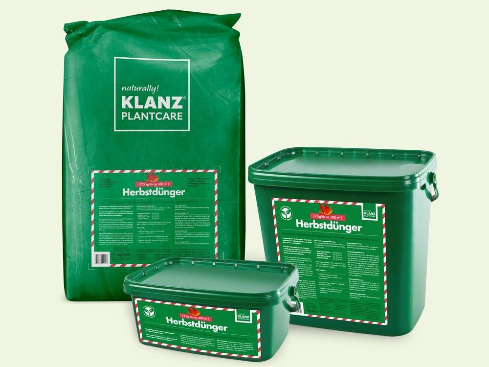 KLANZ Herbstdünger ergänzt mit seinem hohen Gehalt an Kali in hervorragender Weise den KLANZ Universaldünger. Zum Ende der Vegetationsperiode lagern Rasengräser, Stauden und Gehölze noch Nährstoffe ein. Da diese jetzt aber nicht mehr in ausreichender Menge in der Bodenlösung zur Verfügung stehen, ist die Nachdüngung mit einem kalibetonten Dünger mit Spurenelementen wichtig.